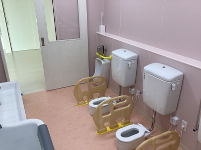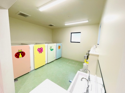 りす組・うさぎ組の間に配置されていて、手洗いは温水付きの水栓でトイレはウォームレット仕様となっています。