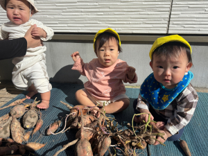 春に芋の苗を植えてから、芋が大きくなることをずっと楽しみにしていました。 ひよこ組は畑の土を触った...