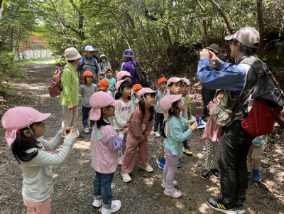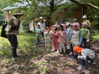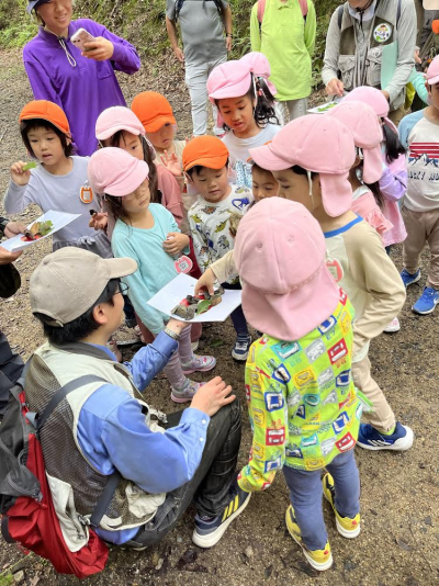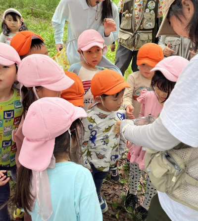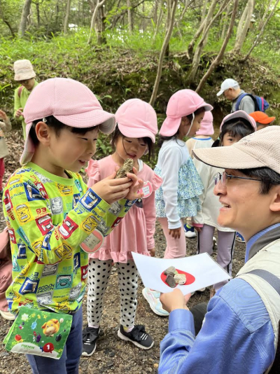森の学舎ようちえんでは、生き物や自然に触れたり、ゲームをしながら自然について学びました。