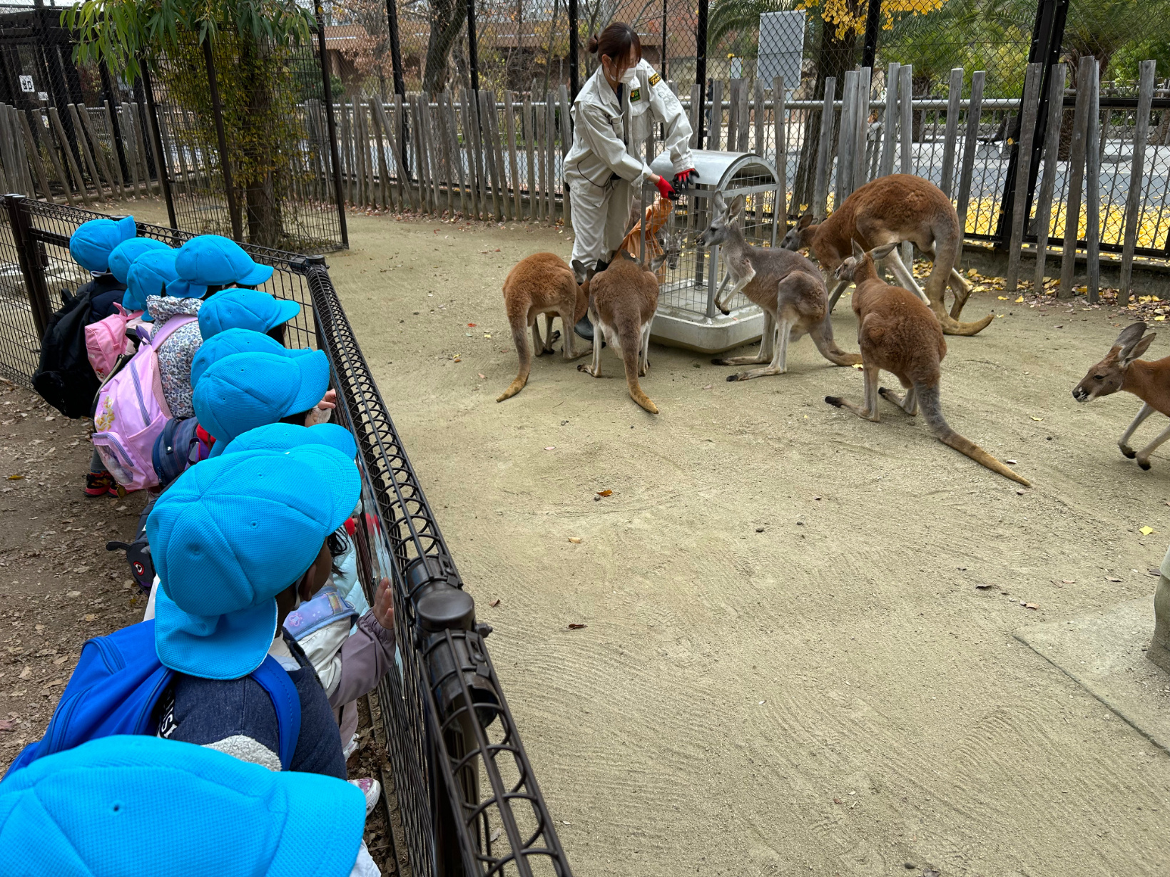ご飯の準備ができると奥から次々カンガルーが出てきてみんなの前でご飯を食べ始め「いっぱい走って来た」「かわいい」と言って一番近い場所で見ることが出来ました。