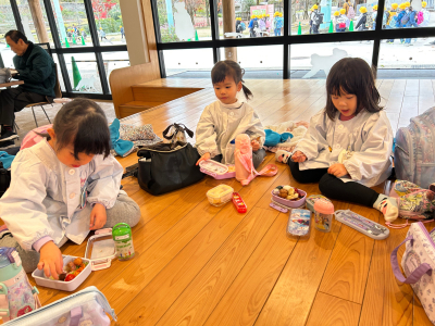 遊んでいる時にも子どもたちから「先生、お弁当食べたい」「もう帰ってお弁当食べよっか」などという声が聞かれ、お家の人が作ってくれたお弁当が楽しみでたまらない様子でした。
