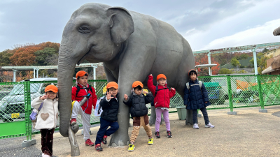 ぞう、きりん組は一緒に手を繋いで動物園を見ました。