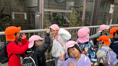 ぱんだ組は友だちと手を繋いでたくさんの動物を見ました。
