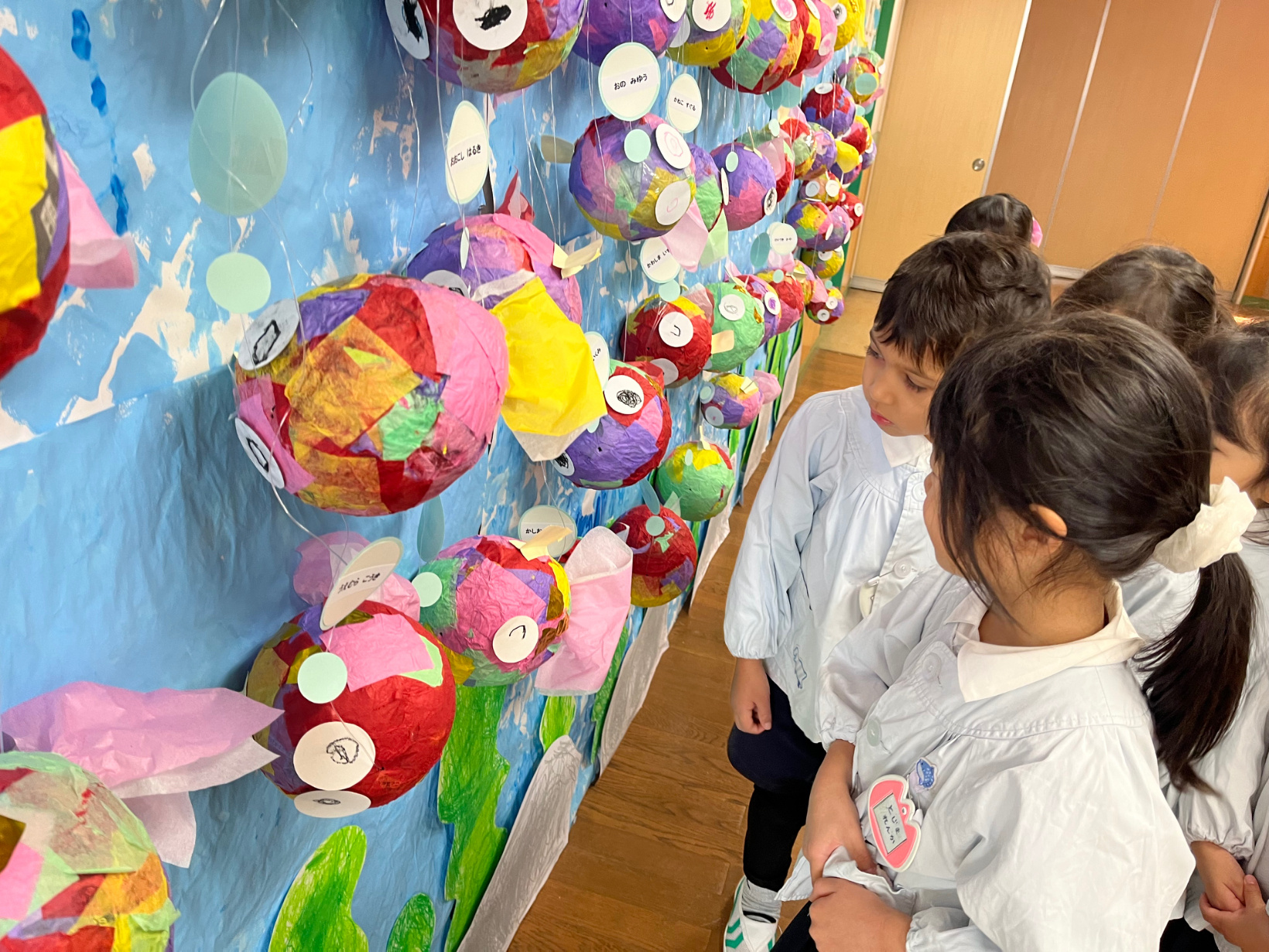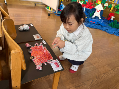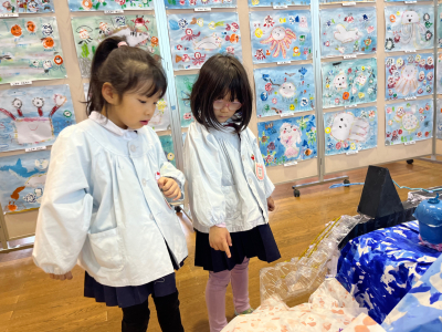 みんなよりも大きな作品を見た時には、「大きすぎる」「どうやって作ったんだろう」と興味津々でした。