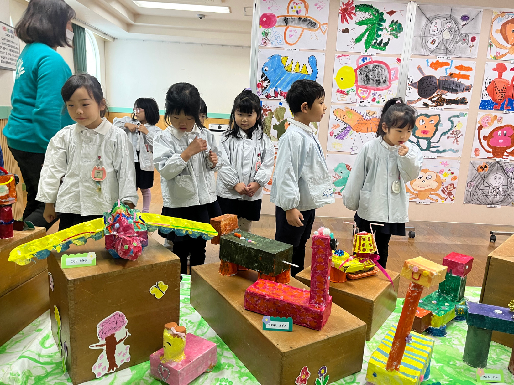 ぞう組が道徳保育園の造形フェスタの見学に行ってきました。