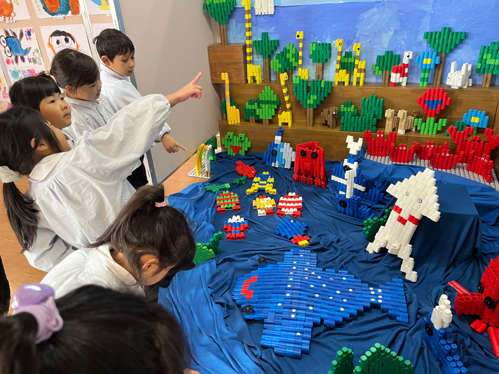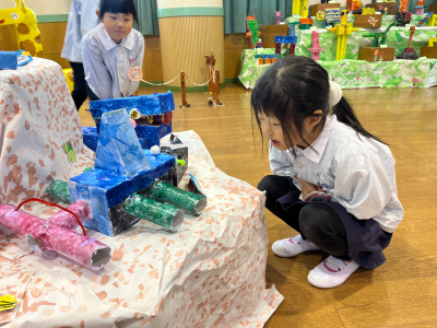 造形フェスタで見た作品を、自分達の製作やあそびに取り入れることができて、嬉しそうなぞう組さんでした。