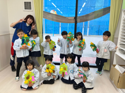 0~2歳児クラスのハッピーホリデーでは、手遊びやパネルシアターを行いました。
