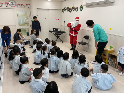 サンタさんが登場すると「サンタさ~ん」と手を振りながら呼んでみんな嬉しそうでした。