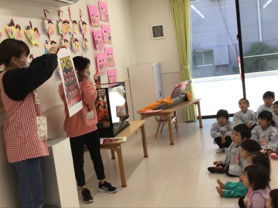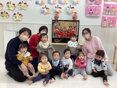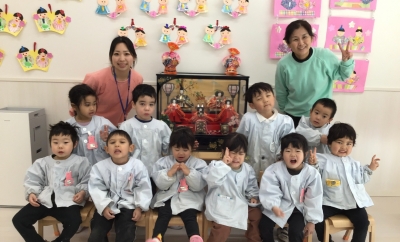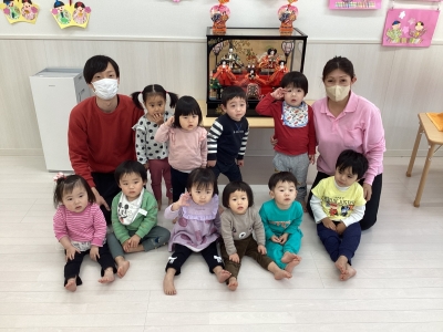 ぞう組の部屋に各クラスで作ったひなまつりの製作を貼り出して開きました。