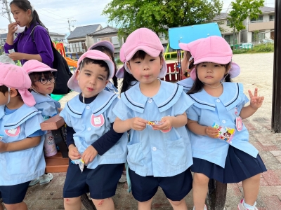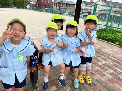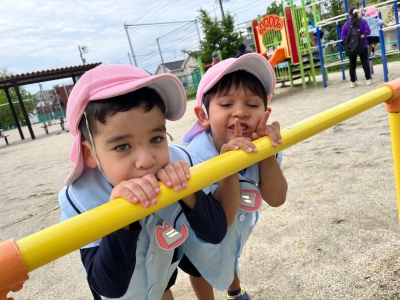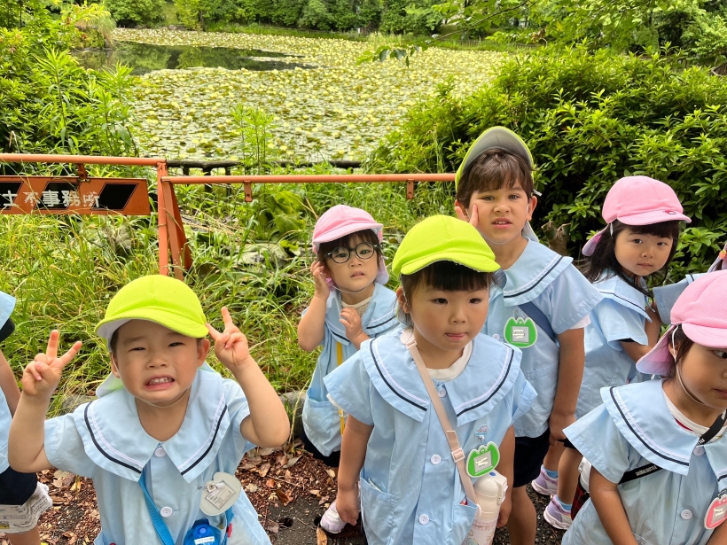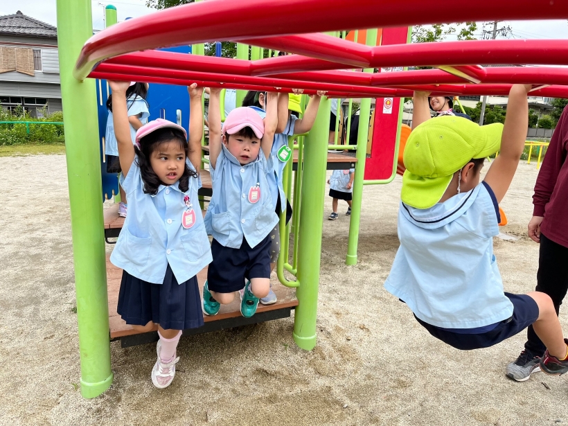 2023年5月 園外保育に行きました 幼児クラス(ぱんだ組、きりん組)さんで呼続公園に行きました。 バスに乗って初めに公園内を散策。 池には蓮の華が咲いていました。 公園のベンチに座っておやつタイム! 保育園には無い雲梯に初チャレンジ! 公園、楽しいね! 雨上がりだったから滑り台やぶらんこは出来なかったけれど、みんな帰る時間ギリギリまでたくさん遊んで大満足でした。 道徳保育園のバスの運転手さん、ありがとう。 また行こうね!