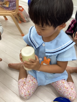 ただ重たさから、まるで赤ん坊を抱えるかのように持って「重いよ~」と言ってすぐに保育者に渡していました。