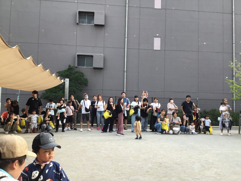 保育室を「ひつじのショーン」の上演会場、涼み場として準備しました。夕方開催でしたが、気温も高くこの部屋が大人気でした。「ドレスコーナー」も準備し着替えをしてプリンセス気分を味わう子どももいました。