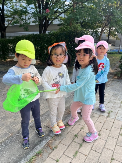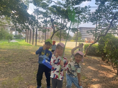 「見てーー!」と捕まえた子どもがみんなを呼ぶと、「すごーい!」とまた大はしゃぎでとても可愛らしかったです。